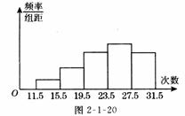16.(9分)如图 2-l-20是某校初三年级部分学生做引体向上的成绩,进行整理后,分成五组画出的频率分布直方图,已知从左到右前四个小组的频率分别是0.05,0.15,0.25,0.30,第五小组的频数是25,根据已知条件回答下列问题:
