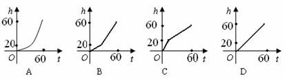 8.某蓄水桶的形状如图3所示,60min可将水桶注满,其中水位h(cm)随着注水时间t(min)的变化而变化,假定进水管的水速是均匀的,则h与t的函数图象大致为( ).