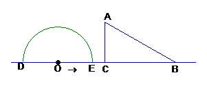 1、如图,形如量角器的半圆O的直径DE=12cm,形如三角板的⊿ABC中,∠ACB=90°,∠ABC=30°,BC=12cm。半圆O以2cm/s的速度从左向右运动,在运动过程中,点D、E始终在直线BC上。设运动时间为t (s),当t=0s时,半圆O在⊿ABC的左侧,OC=8cm。