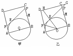 2、已知,如图(甲),正方形ABCD的边长为2,点M是BC的中点,P是线段MC上的一个动点, P不运动到M和C,以AB为直径做⊙O,过点P作⊙O的切线交AD于点F,切点为E.