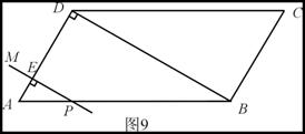 24 如图9,在平行四边形ABCD中,AD=4 cm,∠A=60°,BD⊥AD. 一动点P从A出发,以每秒1 cm的速度沿A→B→C的路线匀速运动,过点P作直线PM,使PM⊥AD .