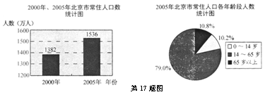 17.根据北京市统计局公布的2000年,2005年北京市常住人口相关数据,绘制统计图表如下: