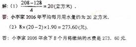 (2)小李家从2006年5月1日起采取节水措施,若每月用水量平均平均节约2m3,且每月用水量均