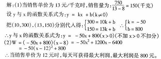 8、(2007江苏泰州)通过市场调查,一段时间内某地区某一种农副产品的需求数量