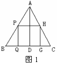 5、在△ABC中,边BC=12cm,高AD=6cm,边长为x的正方形PQGH的一边在BC边上,其余两个顶点分别在AB、AC上,则边长x等于( )