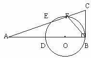 28.如图,在RtDABC中,ÐABC=90°,O是AB上的一点,以O为圆心,以OB为半径作圆,交AC于E、F,交AB于D。若E是弧DF的中点,且AE:EF=3:1,FC=4,求ÐCBF的正弦值及BC的长。