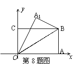 8、如图,在直角坐标系中,将举行OABC沿OB对折,使点落在点A1处,已知OA=,AB=1,则点A1的坐标是__________.
