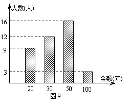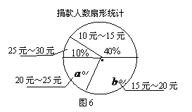 (2) 从图6中可以看出捐款金额在25-30元的人数占全班人数的百分比是多少?