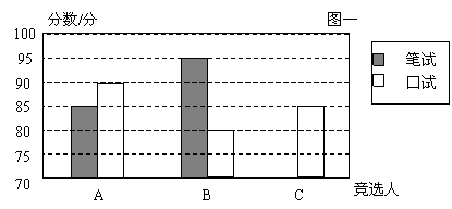 三名大学生竞选系学生会主席,他们的笔试成绩和口试成绩(单位:分)分别用了两种方式进行了统计,如表一和图一: