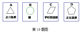 (10分) 有四张背面相同的纸牌A,B,C,D,其正面分别画有四个不同的几何图形(如图).小华将这4张纸牌背面朝上洗匀后摸出一张,放回洗匀后再摸出一张.