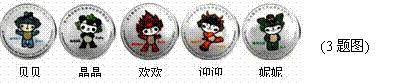 3、如图3、袋中放有一套(五枚)北京2008年奥运会吉祥物福娃纪念币,依次取出(不放回)两枚纪念币,恰好能够组成“欢迎”的概率是 ( )