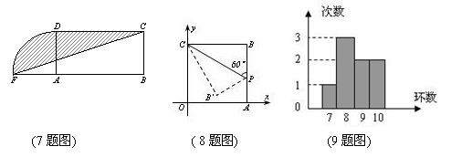 7、设计一个商标图案如图中阴影部分,矩形ABCD中,AB=2BC,且AB=8cm,以点A为圆心,AD为半径作圆与BA的延长线相交于点F,则商标图案的面积等于( )