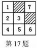 17、如图,在3×3的正方形网格中,已有两个小正方形被涂黑,再将图中的一个小正方形涂黑,所得图案是一个轴对称图形,则涂黑的小正方形可以是 (填出所有符合要求的小正方形的标号).