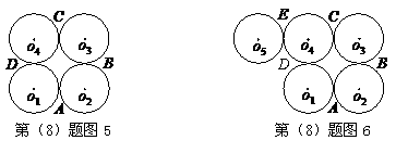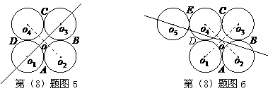 8、如图5,,,,为四个等圆的圆心,A,B,C,D为切点,请你在图中画出一条直线,将这四个圆分成面积相等的两部分,并说明这条直线经过的两个点是 ;如图6,,,,,为五个等圆的圆心,A,B,C,D,E为切点,请你在图中画出一条直线,将这五个圆分成面积相等的两部分,并说明这条直线经过的两个点是 .