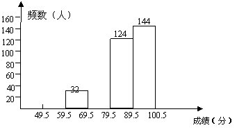 (7分)某县九年级有15000名学生参加安全应急预案知识竞赛活动,为了了解本次知识竞赛的成绩分布情况,从中抽取了400名学生的得分(得分取正整数,满分100分)进行统计: