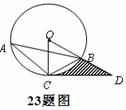 (2)若⊙O的半径长为1,求由弧BC、线段CD和BD所围成的阴影部分面积(结果保留和根号)。