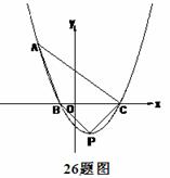 如图,已知顶点为P的抛物线经过点,并与轴交于,C两点。
