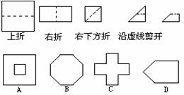 9.如图所示,把一个正方形三次对折后沿虚线剪下,则所得的图形是( ).