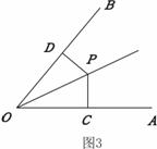12、如图3,P是∠AOB的角平分线上的一点,PC⊥OA于点C,PD⊥OB于点D,写出图中一对相等的线段(只需写出一对即可) .