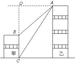 22、 甲、乙两建筑物相距10米,小明在乙建筑物A处看到甲建筑物楼顶B点的俯角为,看到楼底C点的俯角为,求甲建筑物BC的高. (精确到0.1米,)