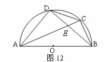 24、如图12所示,四边形ABCD是以O为圆心,AB为直径的半圆的内接四边形,对角线AC、BD相交于点E。
