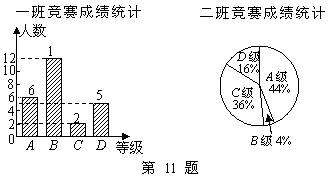 11、(沈阳08)在学校组织的“喜迎奥运,知荣明耻,文明出行”的知识竞赛中,每班参加比赛的人数相同,成绩分为