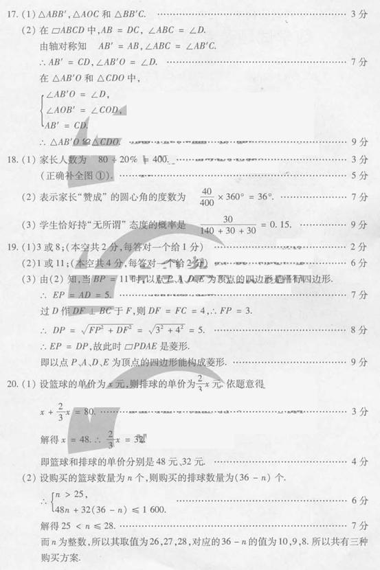 18.(9分)“校园手机”现象越来越受到社会的关注.“五一”期间,小记者刘凯随机调查了城区若干名学生和家长对中学生带手机现象的看法,统计整理并制作了如下的统计图: