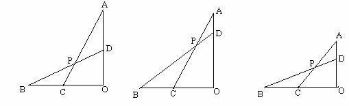 24.(本题满分10分) 已知:线段OA⊥OB,点C为OB中点,D为线段OA上一点。连结AC,BD交于点P.