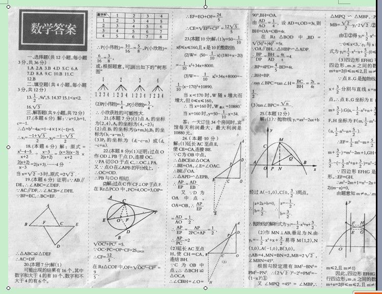 23.(本题满分10分)某宾馆有50个房间供游客住宿,当每个房间的房价为每天l80元时,房间会全部住满.当每个房间每天的房价每增加10元时,就会有一个房间空闲.宾馆需对游客居住的每个房间每天支出20元的各种费用.根据规定,每个房间每天的房价不得高于340元.设每个房间的房价每天增加x元(x为10的正整数倍).