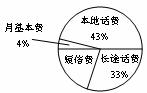 15、(2009年安徽)如图,将小王某月手机费中各项费用的情况制成扇形统计图,则表示短信费的扇形圆心角的度数为 .