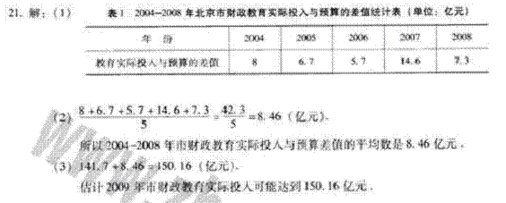 (3)已知2009年北京市财政教育预算是141.7亿元.在此基础上,如果2009年北京市财政教育实际投入按照(2)中求出的平均数增长,估计它的金额可能达到多少亿元?