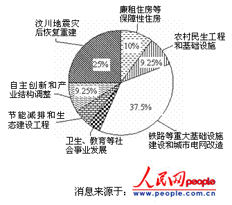 (1)在统计表中,投向“铁路等重大基础设施建设和城市电网改造”的资金测算是 亿元,投向“汶川地震灾后恢复重建”的资金测算是 亿元;