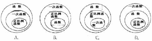 3. 函数,一次函数和正比例函数之间的包含关系是( )