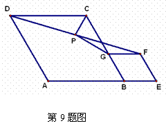 9. 如图,在菱形ABCD和菱形BEFG中,点A、B、E在同一直线上,P是线段DF的中点,连结PG,PC。若∠ABC=∠BEF =60°,则( )