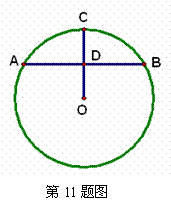 11. 如图,⊙O的半径为2,弦AB垂直平分半径OC与D,则弦AB的长为 。