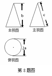 8. 如图是某几何体的三视图及相关数据,则判断正确的是( )