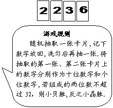 法二:游戏规则改为:抽到的两位数不超过32的得3分,抽到的两位数不超过32的得5分;能使游戏公平.