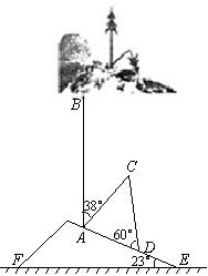 已知山坡的坡角∠AEF=23°,量得树干的倾斜角为