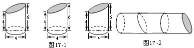 14.图17-1是三个直立于水平面上的形状完全相同的几何体(下底面为圆面,单位:cm).将它们拼成如图17-2的新几何体,则该新几何体的体积为 cm3.(计算结果保留)