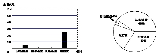 21.小王某月手机话费中的各项费用统计情况见下列图表,请你根据图表信息完成下列各题:
