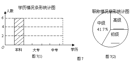 (2)在图7(1)中,将反映老师学历情况的条形统计图补充完整;