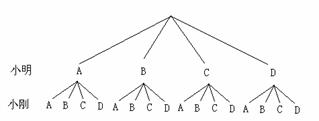 由此可知,共有16种等可能结果.其中小王掷得数字比小李掷得数字小的有6种:(1,2),(1,3),(1,4),(2,3),(2,4),(3,4).