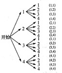 5. (2011四川南充市,16,6分) 在一个不透明的口袋中装有4张相同的纸牌,它们分别标有数字1,2,3,4.随机地摸取出一张纸牌然后放回,在随机摸取出一张纸牌.