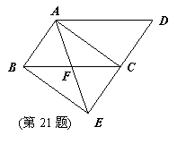 22. (2011四川广安,23,8分)如图5所示,在菱形ABCD中,∠ABC= 60°,DE∥AC交BC的延长线于点E.求证:DE=