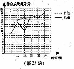 23.(本题10分)某班实行小组量化考核制.为了了解同学们的学习情况,王老师对甲、乙两个小组连续六周的综合评价得分进行了统计,并将得到的数据制成如下的统计表: