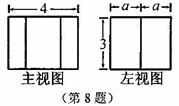 12. (2011浙江杭州,8,3)如图是一个正六棱柱的主视图和左视图,则图中的a=( )