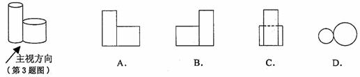 17. (2011浙江温州,3,4分)如图所示的物体由两个紧靠在一起的圆柱体组成,它的主视图是( )