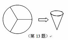 12. (2011江苏宿迁,13,3分)如图,把一个半径为12cm的圆形硬纸片等分成三个扇形,用其中一个扇形制作成一个圆锥形纸筒的侧面(衔接处无缝隙且不重叠),则圆锥底面半径是 ▲ cm.