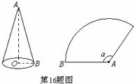 13. (2011山东聊城,16,3分)如图,圆锥的底面半径OB为10cm,它的展开图扇形的半径AB为30cm,则这个扇形的圆心角a的度数为____________.