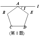 20.(2011江苏南京,8,2分)如图,过正五边形ABCDE的顶点A作直线l∥CD,则∠1=____________.